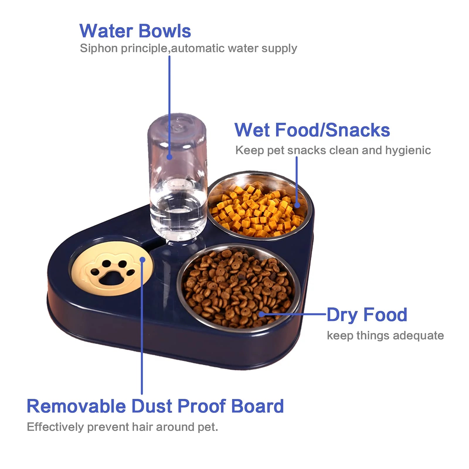 Bellaven - 3-in-1-Napfset für Nass- und Trockenfutter - Edelstahl