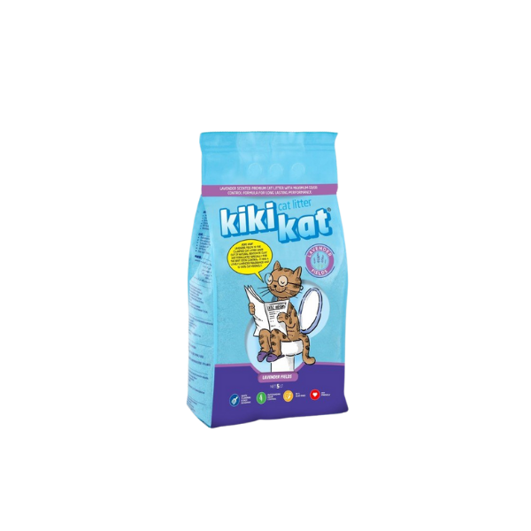 Kiki kat is a premium clumping cat litter made out of a natural white bentonite clay and formulated specially for the best odor control and rapid clumping performance. It has a pleasant lavender fragrance which reminds the lavender fields and is 100% cat-friendly.